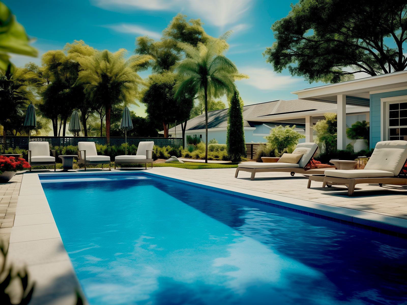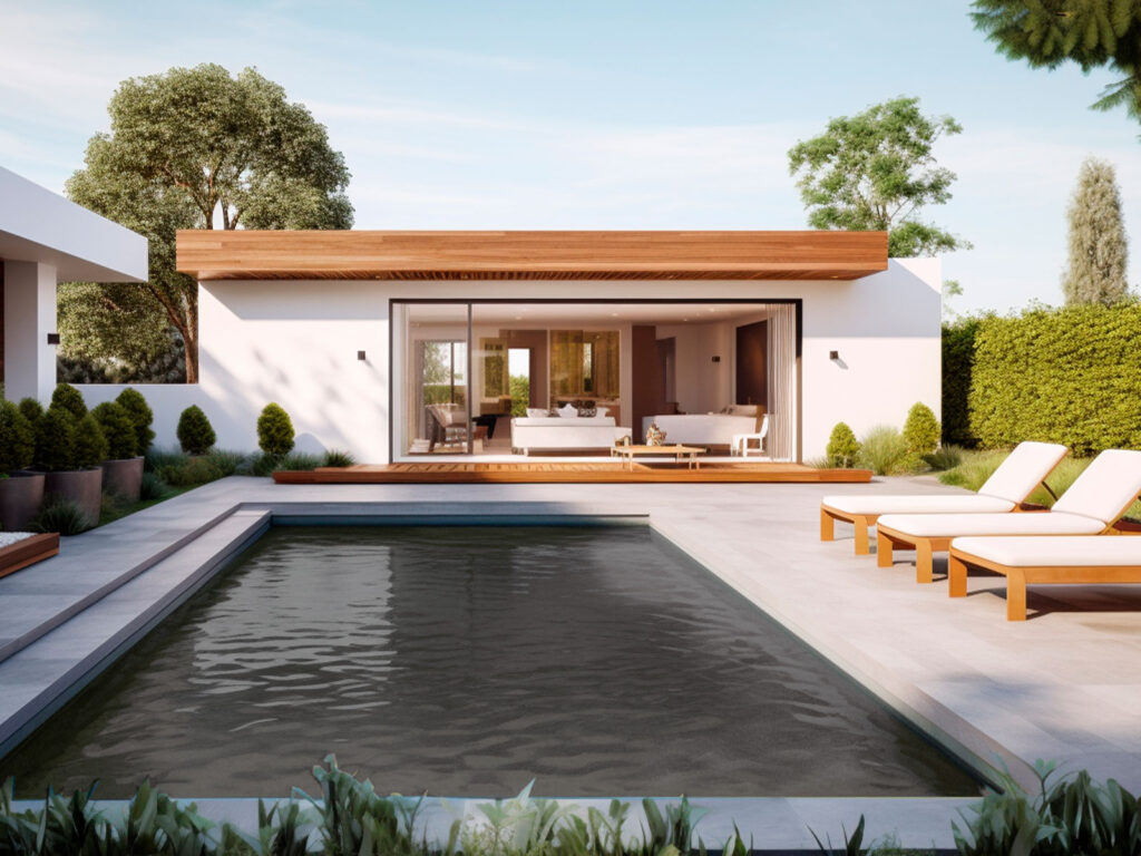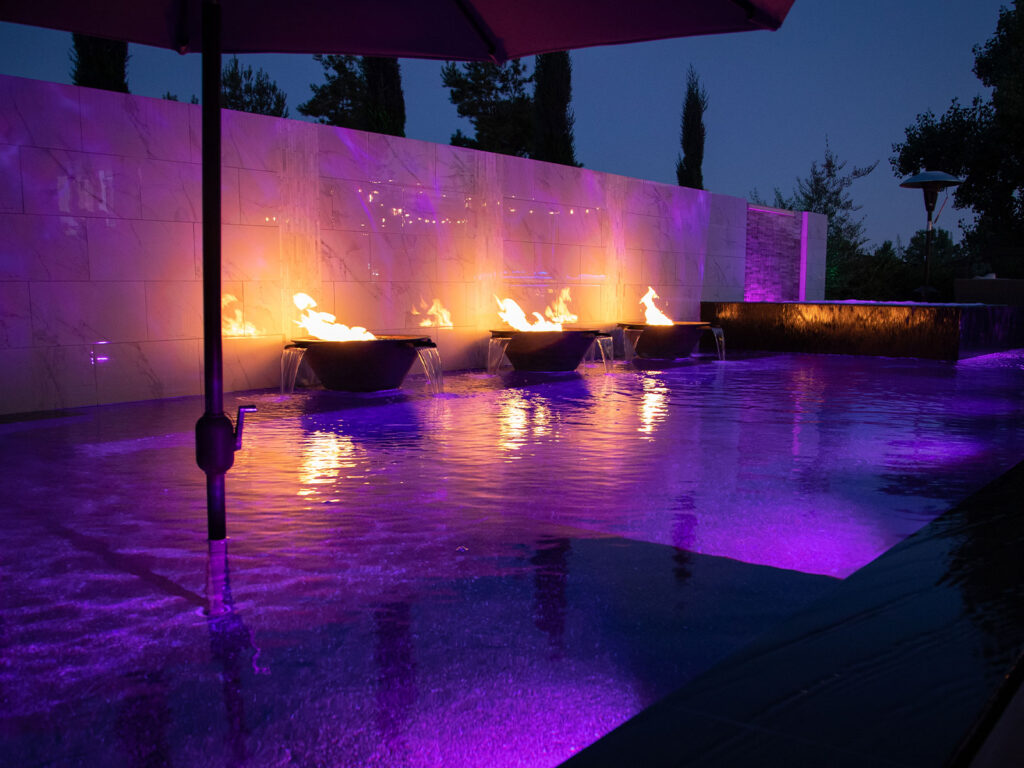 Because mini pebble finishes create more depth and variation in the water, they’re often paired with materials that complement that natural look.