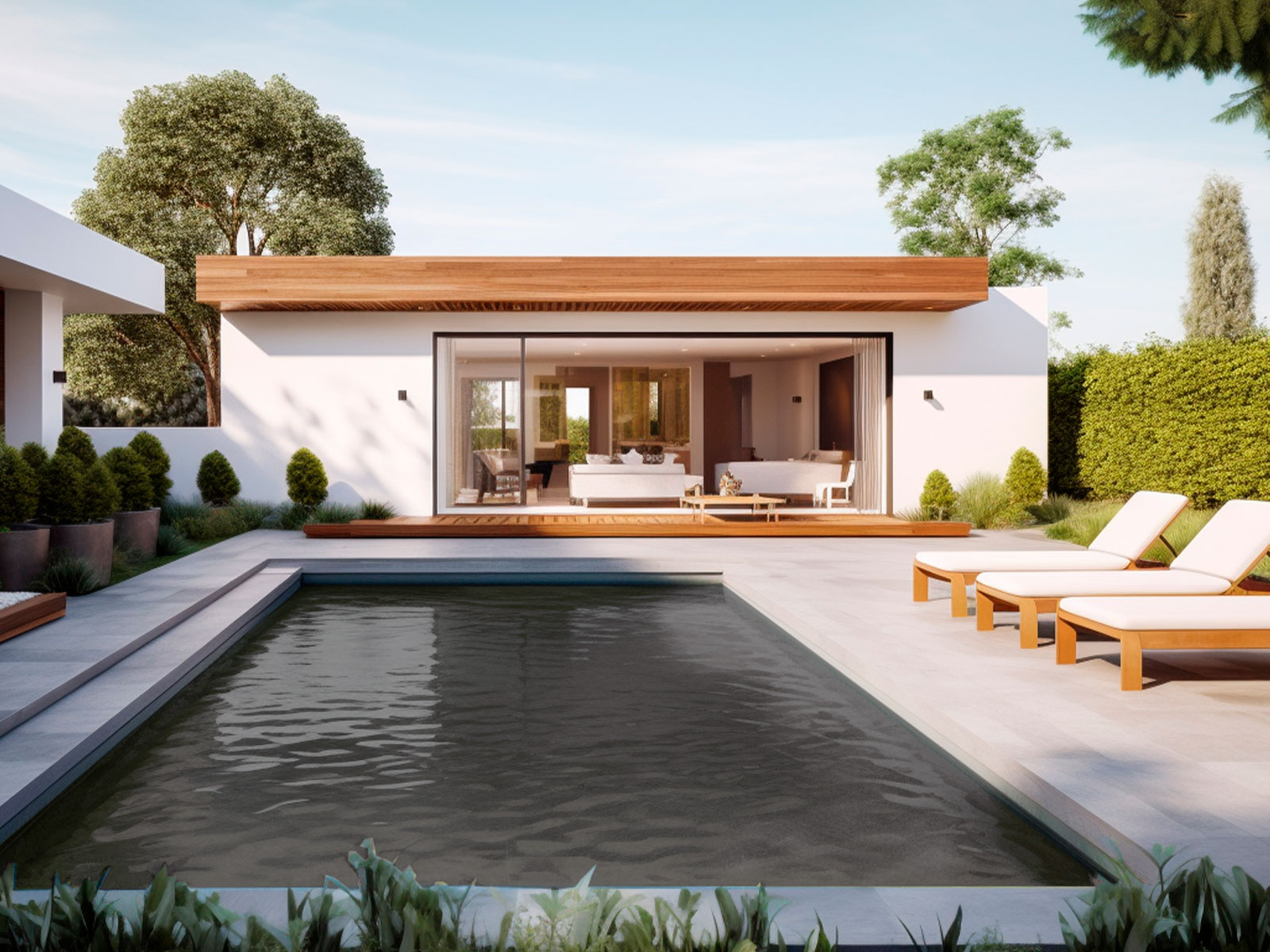 View natural poolside material combinations