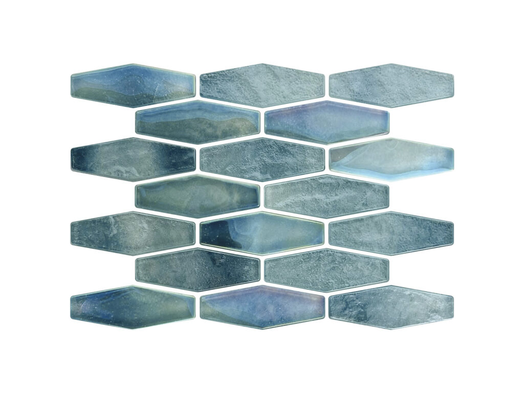 The Maui Full Hex from the Aloha Series introduces a geometric element that adds energy and movement to the design. The hexagon format creates a modern pattern that stands out while still feeling elegant and balanced. Its blue tones echo the color of tropical waters, allowing the tile to catch light and create visual interest when used along waterlines or feature areas.