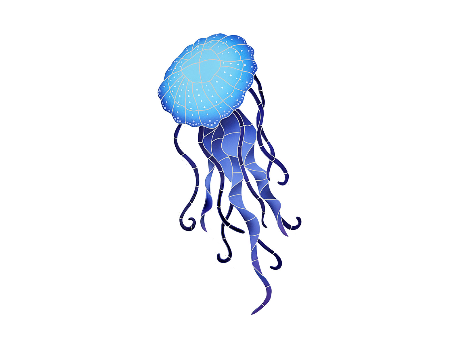 Jellyfish Mosaics showcase fluid forms and soft movement inspired by marine life. Designed for pools and water features, they combine visual depth with durable glass construction for an eye-catching yet refined accent.