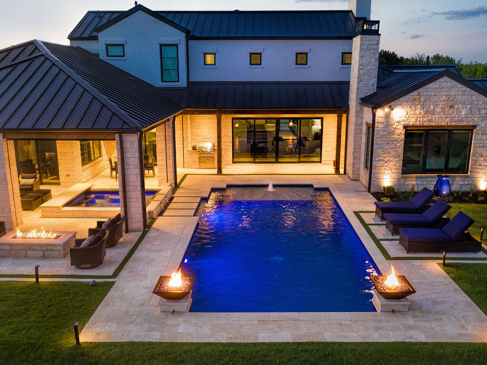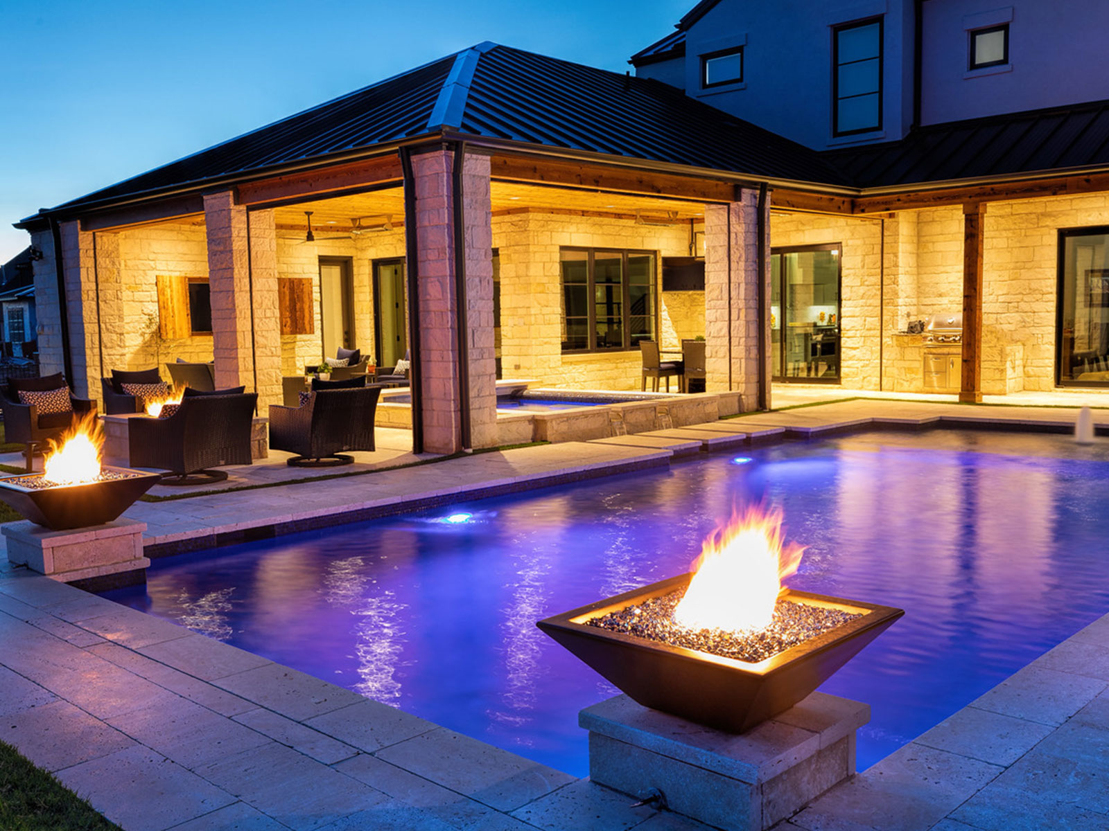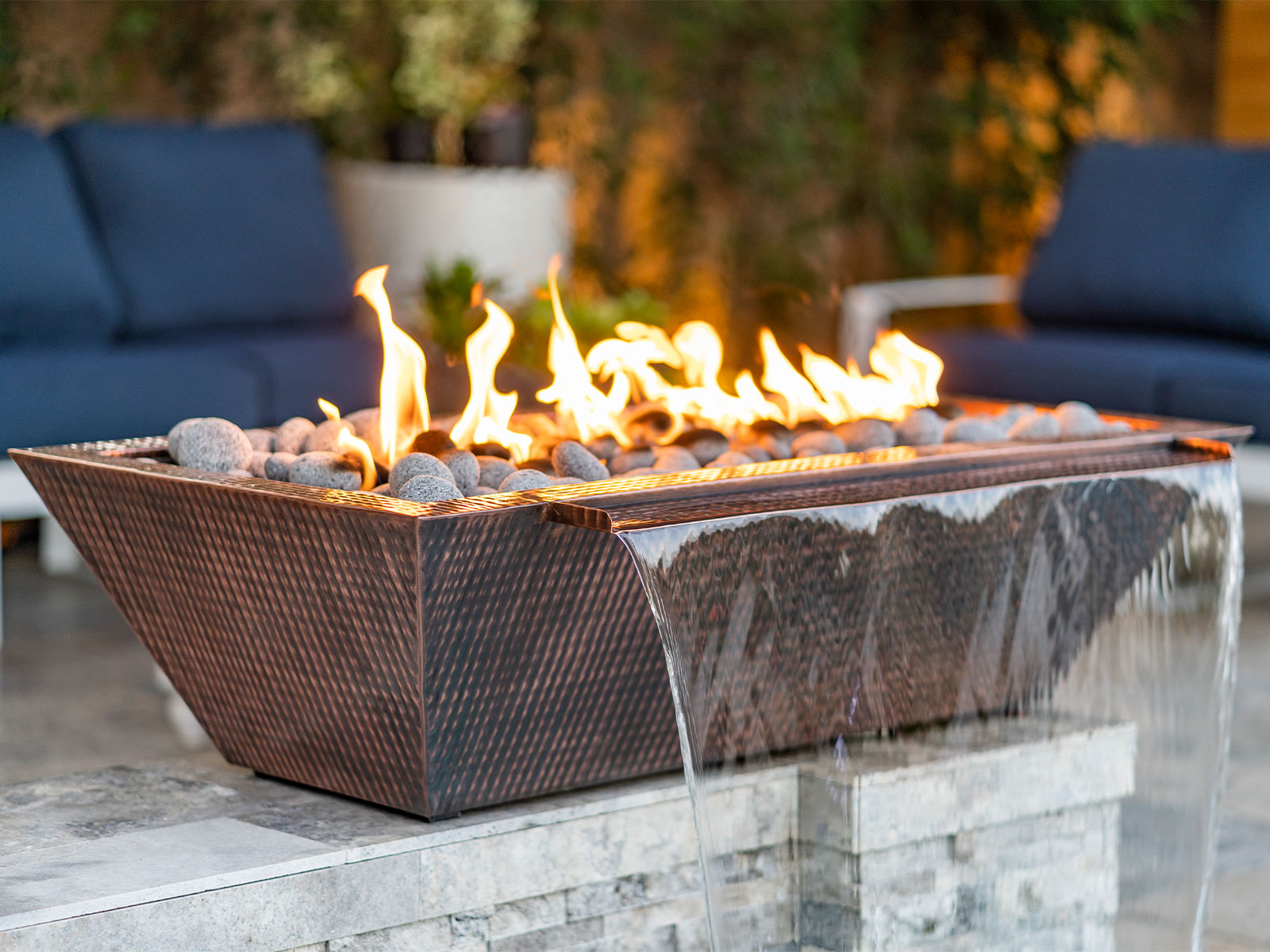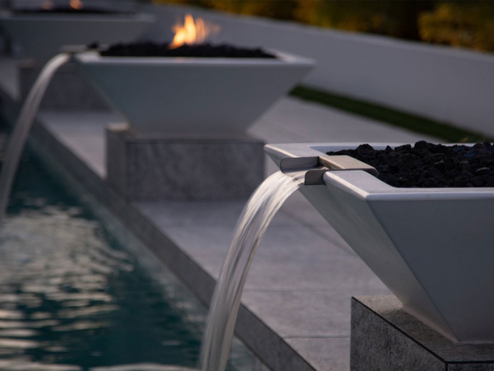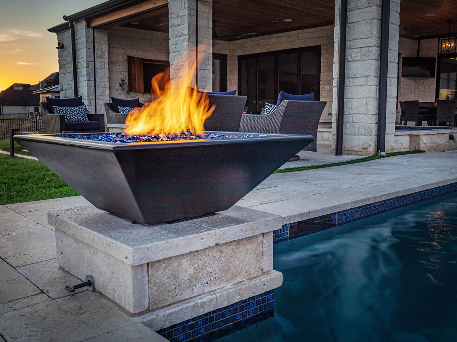 Fire and water bowls bring movement, ambiance, and visual drama to outdoor living spaces, combining the warm glow of fire with the soothing sound of flowing water. They serve as eye-catching focal points for pools, patios, and landscape designs while creating atmosphere, warmth, and a resort-style experience that enhances evening gatherings and daytime relaxation.