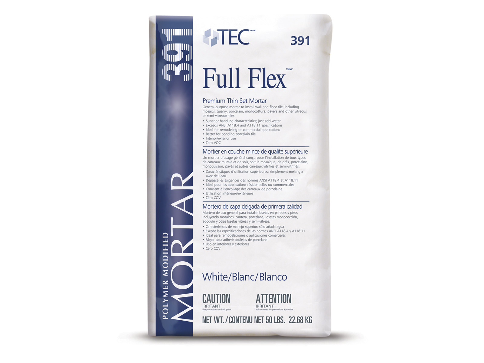 TEC FullFlex is a dependable, high-strength thinset mortar designed for everyday tile installations. It offers excellent bond performance, smooth application, and reliable durability for ceramic, porcelain, and natural stone. Suitable for both floors and walls, FullFlex provides a solid, long-lasting foundation for residential and commercial projects.